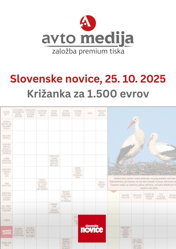 Ta pravila določajo način sodelovanja v nagradni križanki, objavljeni 25. 10. 2025 v časopisu Slovenske novice. Organizator nagradne križanke je podjetje Avto medija, d. o. o., Dimičeva ulica 16, 1000 Ljubljana.