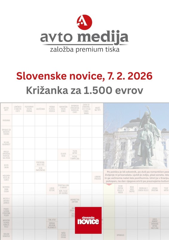 Bralci bodo za nagradno križanko izvedeli v časopisu Slovenske novice, ki izide 7. 2. 2026. V nagradni igri lahko sodelujejo tako, da izpolnijo priloženi originalni nagradni kupon, ki ga pošljejo po pošti na naslov Družinski zabavnik, Dimičeva ulica 16, 1000 Ljubljana. V žrebu za denarno nagrado sodelujejo le s pravilnim pripadajočim geslom.